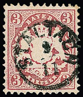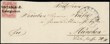 "Staltach", Fingerhut-K1 zentrisch auf Kabinettstück 3 Kr. rosa