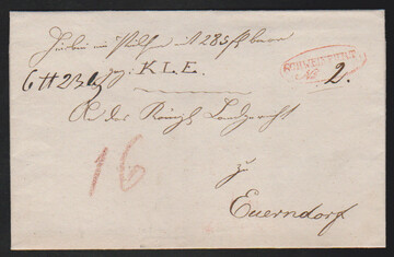 "Schweinfurt No.", (1819), roter Ovalstempel auf Paketbegleitbrief nach Euerndorf