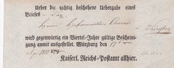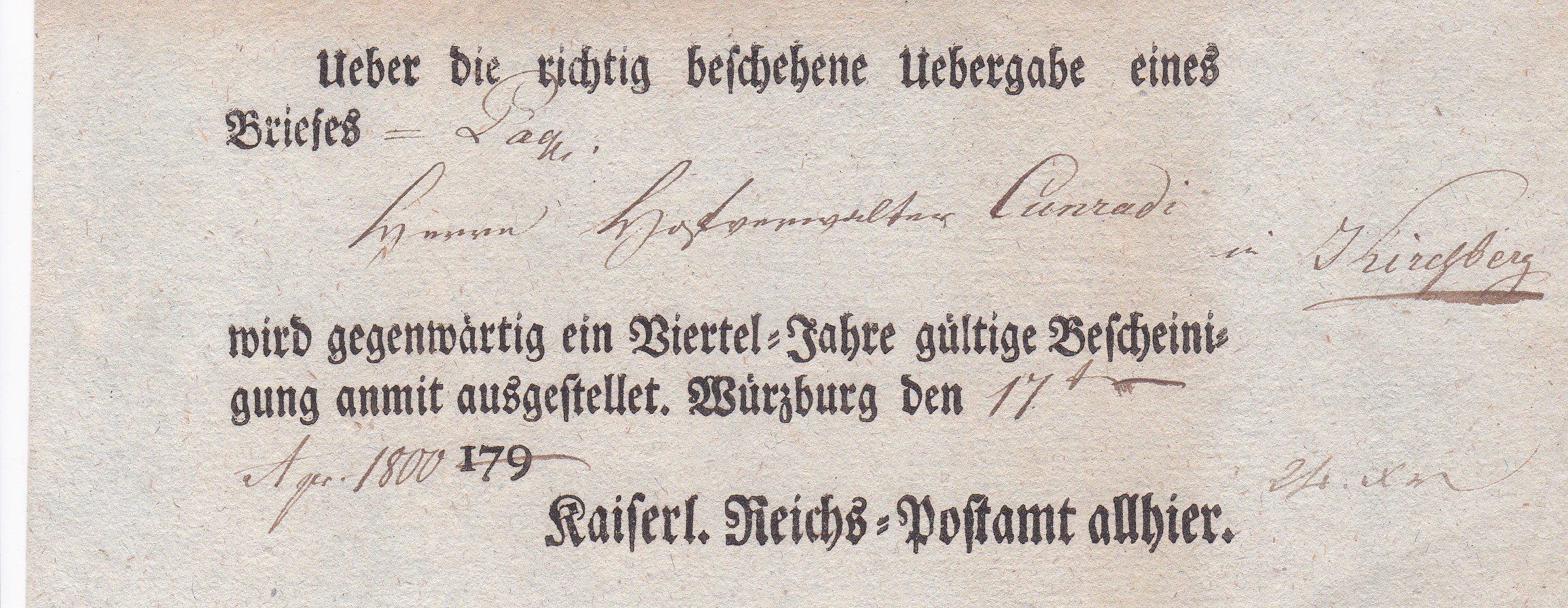 "Würzburg", 1800, Ortsdruck-Postschein der Reichspost "Kaiserl. Reichs-Postamt allhier"
