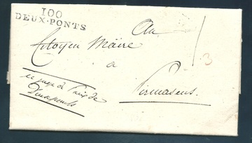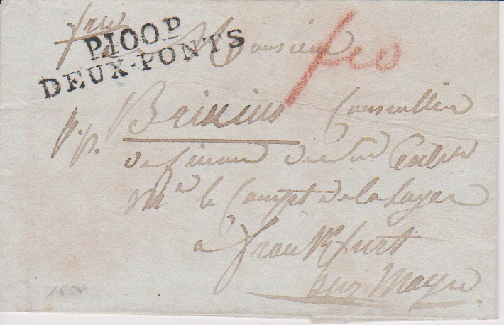 "Zweibrücken", (1804), L2 "P.100.P. DEUX. PONTS" auf Briefhülle nach Frankfurt