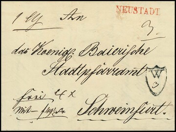 "Würzburg", 1839, Wappenstempel "W" nebst großem L1 "NEUSTADT" auf Luxus-Wertbrief nach Schweinfurt
