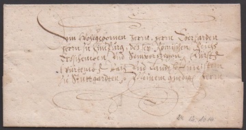 "Winterhausen" bei Würzburg, 1614, früher Schnörkel-Altbrief (unbed. Wasserspuren) nach Stuttgart