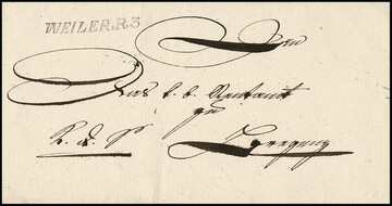 "Weiler R.3", (1812), sehr klarer seltener L1 der 1815 bereits wieder geschlossenen schwäbischen Postanstalt auf Brief nach Bregenz (Feuser 300,-)