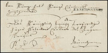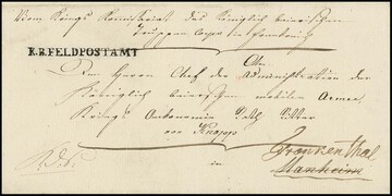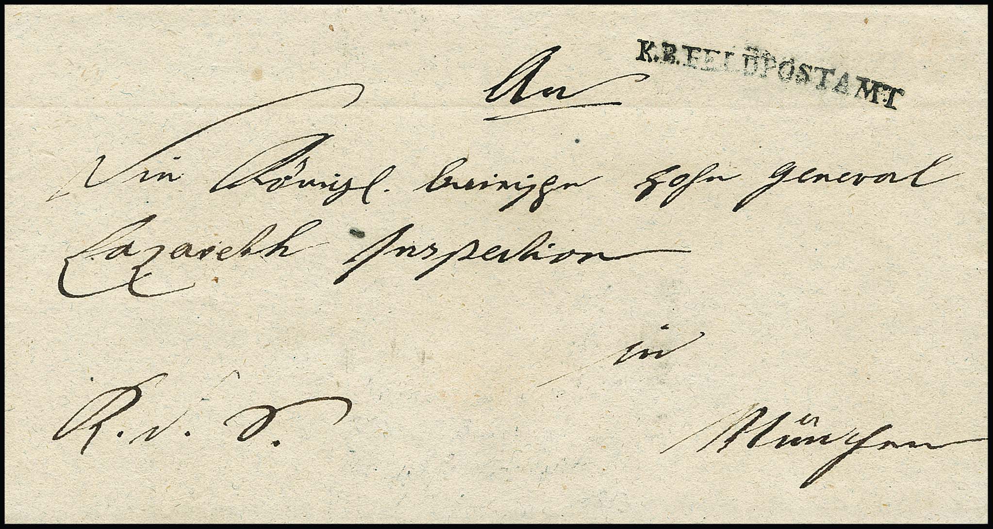 Feldpost, (1813), klarer L1 "K.B. FELDPOSTAMT" (44mm lang) auf Briefhülle vom Feld-Kriegs-Commissariat im Hauptquartier nach München
