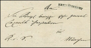 Feldpost, (1813), klarer L1 "K.B. FELDPOSTAMT" (47mm) auf Briefhülle vom Kriegs-Kommissariat des königlich kaiserischen Truppen-Corps in Frankreich nach Mannheim