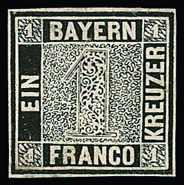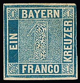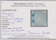 1 Kr. blau, seltener Probedruck mit kleinen Mängeln, von guter Optik, Fotoexp. Brettl. Mi. 4000,-