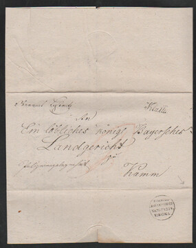 Desinfektionspost, 1832, klarer K1 "KOENIGL. BAYERISCHES SANITAETS SIEGEL" rs. auf Brief mit Inhalt von Klattau nach Cham. Sign. Pfenninger