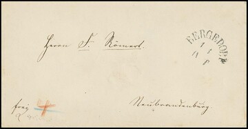 1860 (ca.), HK "Bergedorf" auf Couvert via Bahnpost "Hamburg-Berlin" (rs. L3) nach Neubrandenburg
