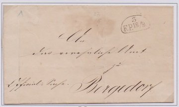 1865, HK "Bergedorf" auf eigenhändig geschriebenem Brief des Postmeisters Paalzow an die Exped. der Eisenbahn-Zeitung in Lübeck
