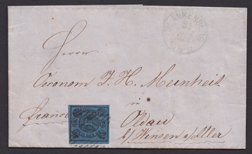 2 Sgr. schw./blau, gut gerandet, auf Prachtbrief mit zartem NS "4" und blauem Neben-K2 "Blankenburg", Mi. 220,-