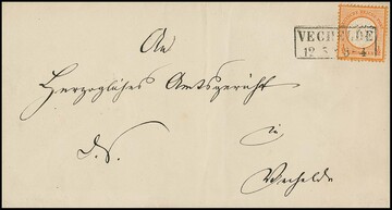 "Vechelde", guter nachverw. Ra2 auf drei Brustschild-Belegen, dabei Kabinett-Ortsbrief mit Einzelfrankatur 1/2 Gr. orange, sowie frisches Paar 1/2 Gr. (kl. Spalt)