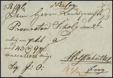 "Rocklum", 1803-1807, vier Briefe mit handschriftlichen Aufgaben, seltener Postort