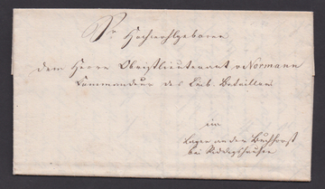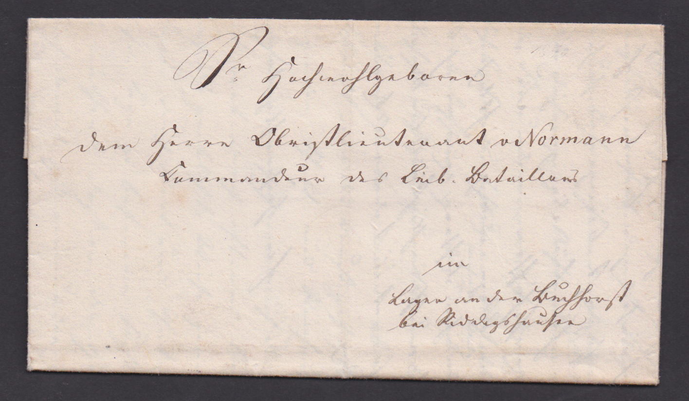 1840, Militärpost, Brief von Braunschweig, gerichtet an den Obristleutnant v. Normann, Kommandeur des Leib-Bataillons im Lager an der Buchhorst bei Riddagshausen, mit einer Anzeige des Schuhmachermeisters Hirte gegen den Corporal Schmidt wegen tätlicher Misshandlung. Nach einer Auseinandersetzung über eine kindliche Äusserung des sechsjährigen Sohnes des Schuhmachers entbrannte ein Streit, während dem es zu Tätlichkeiten gegen die Frau des Schuhmachers kam. Der Schuhmacher griff ein und wurde aufs gröblichste misshandelt. Herr Hirte verlangt eine gerichtliche Untersuchung. Ein seltenes Beweisstück der Auflehnung eines Zivilisten gegen einen Angehörigen des Braunschweiger Militärs