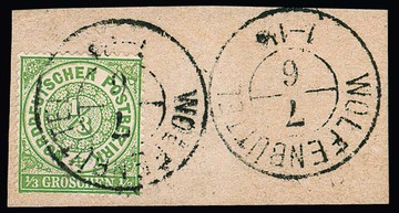 "Wolfenbüttel", der seltene nachverw. K2 in großer Grotesk-Type klar auf Kabinettbriefstück 1/3 Gr. NDP, sign. Spalink