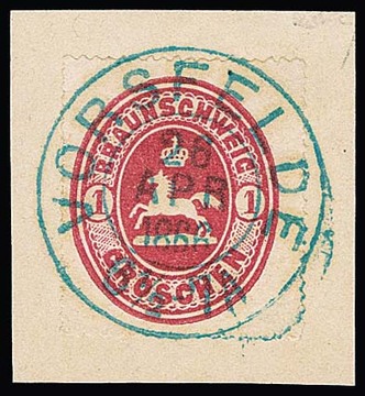 "Vorsfelde", K2 in blau zentrisch auf Luxusbriefstück Wappen 1 Gr., sowie in dunkelblau auf loser 1 Gr. (sign. Brettl)
