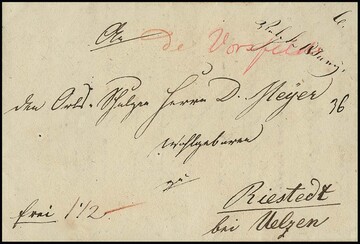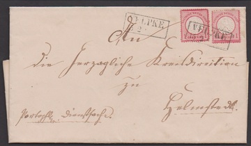 "Velpke", klarer und besserer nachverw. Ra2 auf Brief mit zweimal 1 Gr. kl. Brustschild (eine kurze Zähnchen)