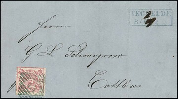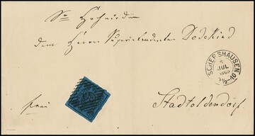 2 Sgr. schw./blau (leichte und unmerkliche Bugspur) einzeln auf sauberem Brief mit NS "12" und K2 "Eschershausen", tadellos sign. Kruschel, Pfenninger und Attest Wilderbeek. Mi. 1200,-