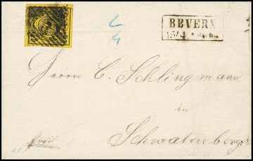 "3" nebst Ra2 "Bevern" auf Prachtbrief 1 Sgr. (Adresse nachgezogen)