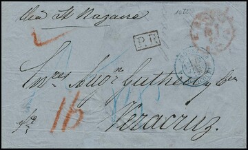 "Bremen F.N.2", 1869, roter Franko-K1 auf Brief der 2. Gewichtsstufe ("16") nach Mexiko, Briefpapier min. knittrig und rs. etwas gestützt