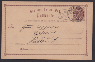 "Bremen Stadtpost-Exp. III", Ra3 nebst K1 "Bremen" auf Brustschild-Postkarte 1/2 Gr. braun, ungewöhnliche Doppel-Entwertung