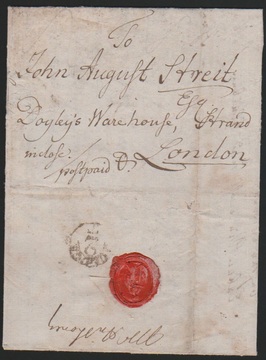 "Bremen", 1793, früher Auslandsbrief (leichte Altersspuren) nach London, hs. "postpaid 0"
