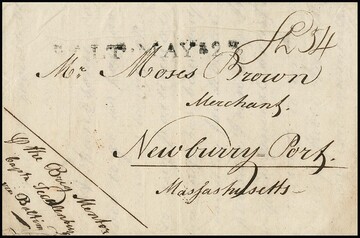 "Bremen", 1797, früher Überseebrief nach Newburry Port/Massach./USA, hs. "p. the Brig Menton Capt. Tecklenburg via Baltim.", mit vs. L1 "BALT. MAY", leichte Altersspuren