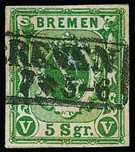 5 Sgr. gelbgrün, gut gerandet und sauber gestempelt, kleiner Flachriß, Fotoexp. Neumann. Mi. 380,-