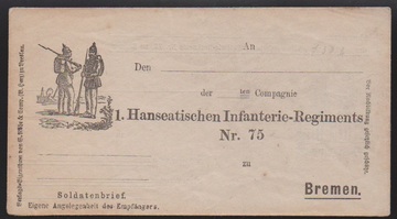 Feldpost, (1871), seltenes ungebrauchtes Feldpost-Vordruck-Couvert des "1. Hanseatischen Infanterie-Regiments Nr. 75 zu Bremen" (Vordruck innen und aussen)