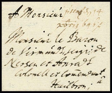 1646, Weissenburg ("Weiss."), kleiner Schmuggelbrief (Adressteil 5 x 4,5cm) nach Heilbronn