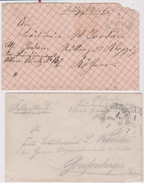 1871, 7.1., und 28.1. (Zierbrief mit kl. Öffnungsmängeln), je K1 "K. Pr. Feld-Post-Exp. d. Avantgarde 4. Armee-Cps." auf zwei Briefen
