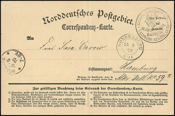 Feldpost, 1870, FP-Correspondenzkarte (Mittelfalte) mit seltenem Truppenstempel "Königl. Preussisches Besatzungs-Batl. Hamburg Landwehr-Regiment 76", nebst K2 "Sonderburg", nach Hamburg
