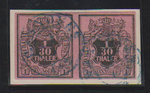 1/30 Th. schw./himbeerrot im Paar auf Kabinettbriefstück mit K2 "Hannover", Fotoexp. Berger. Mi. 150,-