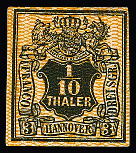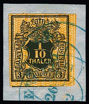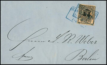 1/10 Th. schw./orange auf gef. Prachtbrief mit doppeltem Ra3 "Hannover" nach Berlin, Attest Jäschke-L. Mi. 500,-