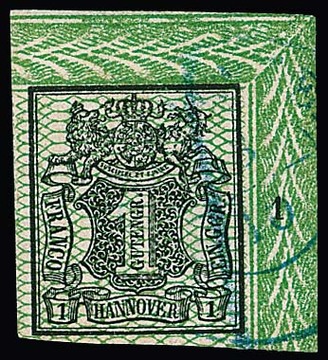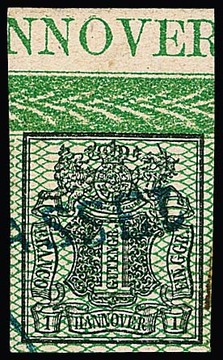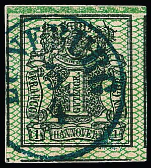 1 Ggr. schw./grün, Kabinett-Oberrandstück mit voller Bordüre und Rand-Inschrift "NNOVER", L1 "Dassel", sign. Engel