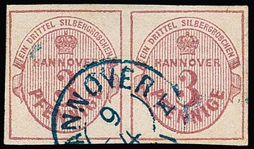 3 Pfge. dunkelrosa, Kabinettpaar mit zentr. K2 "Hannover", sign. Engel