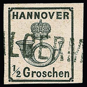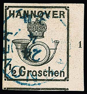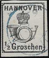 1/2 Gr. schwarz, Kabinettstück mit rechts Reihenzahl "1", K2 "Hannover", sign. Engel
