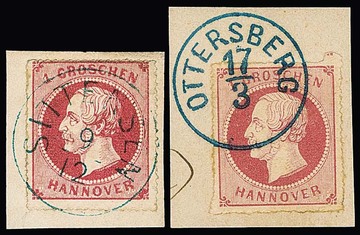 1 Gr. rosa, zwei Kabinett-/Luxusbriefstücke mit kleinen K1, "Ottersberg" und "Sittensen", sowie (min. Patina) auf Bfst. mit K1 "Salzhausen"