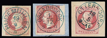 3 Gr. braun, zwei Luxusstücke, K2 "Hildesheim" (vom Unterrand) und seltener K2 "Hohnstorf" ideal, dazu gest. Paar (sign. Brandes)