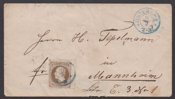 3 Gr. braun, Prachtstück aus der rechten oberen Bogenecke auf Couvert (rs. kl. Öffnungsmgl.) mit K2 "Osterode"