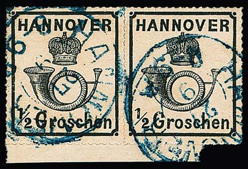 1/2 Gr. schwarz, weißer Gummi, einzeln (sign. Drahn u.a.), sowie prachtvolles Unterrandpaar mit K2 "Hannover", sign. Engel. Mi. 1100,-