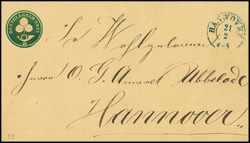 Stadtpost-Ganzsachencouvert 5 Pfg., Type II, "Bestellgeld-frei", als Pracht-Ortscouvert aus Hannover, sign. Decker. Mi. 450,-
