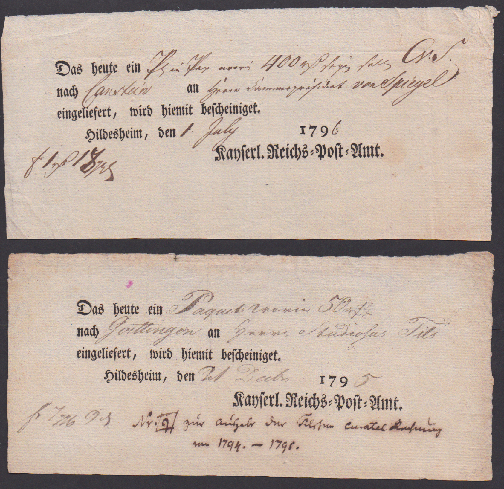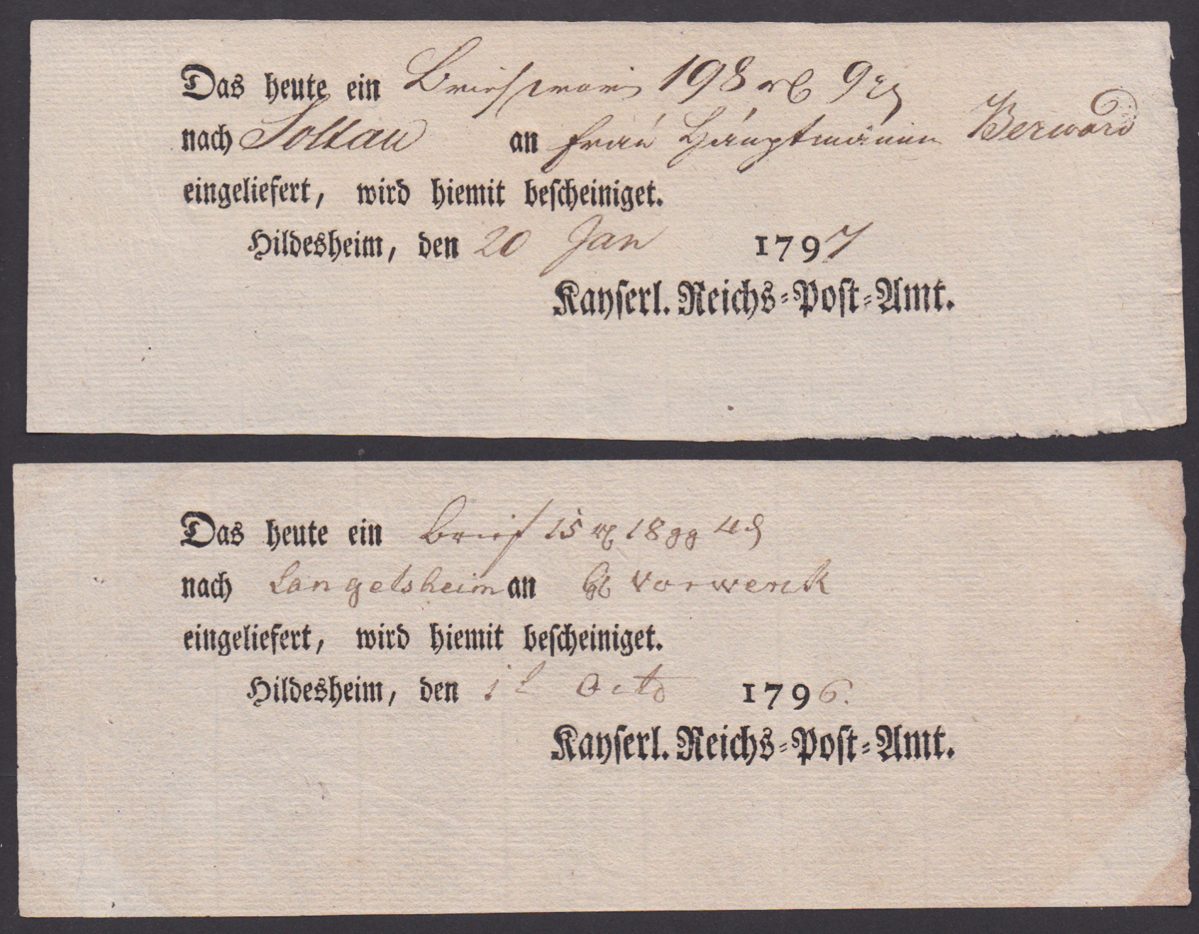 "Hildesheim", 1795-1799, sieben Ortsdruck-Postscheine der Reichspost