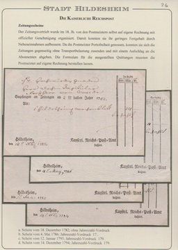 "Hildesheim", 1782-1794, vier Ortsdruck-Zeitungsscheine mit Reichspost-Vordruck (drei versch.)