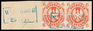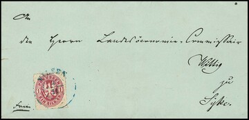 "Wittmund", nachverw. blauer Ra2 klar auf kleinem Paketbrief mit Preußen 6 Pfge. und 2 Sgr. (diese unten Schere)