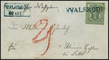 "Walsrode", blauer L1 als Entwertung, Ra2 nebengesetzt, auf Briefchen (Gebrauchsspuren) mit gut gerandeter 1 Ggr.