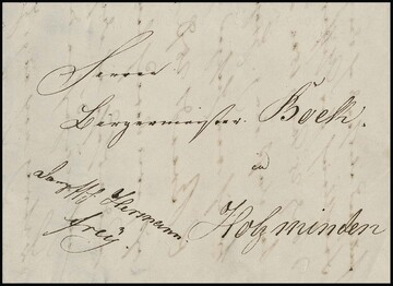 Schiffspost auf der Weser, 1844, Brief aus Hameln (vom Frachtagenten Schädler) mit hs. Vermerk "Dampfsch. Herrmann, frey" nach Holzminden