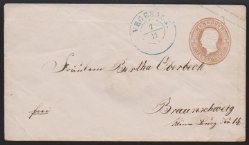 "Vegesack", K2 klar auf Ganzsache 3 Gr. braun nach Braunschweig, sign. Kruschel (gekauft 27. Kruschel 1988 für DM 320,- + Aufg.)