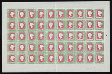 1/4 Sch., der Fehldruck, sowohl Berliner als auch Leipziger Neudruck je im postfrischen Bogen (Rand bzw. NDI wenige Werte Falzrest)