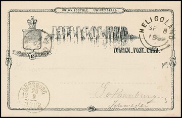 Ganzsachenkarte 10 Pfg. 1886 von Helgoland nach Gothenburg/Schweden gelaufen mit vs. Ankunftsstempel, Bleistift (Adresse) teils radiert