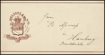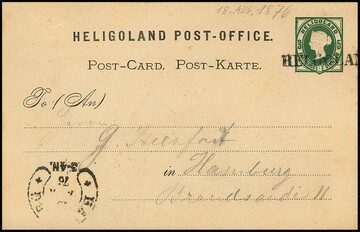Ganzsachenkarte 5 Pfg. grün ungebraucht sowie zweimal gebraucht (mit Rund- bzw. Langstempel "Helgoland"), Mi. 415,- (einmal Adreßname radiert)
